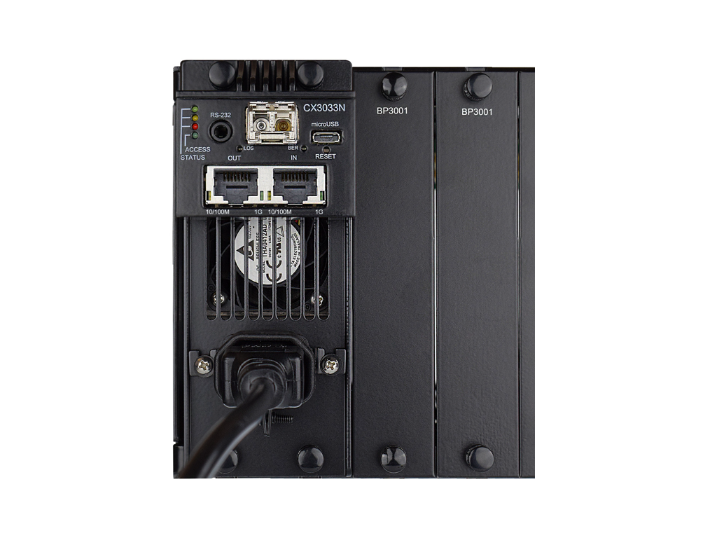 - Two 10 / 100 / 1000 Mbps ethernet ports; second port supports daisy‐chaining of CX3033N modules in multiple chassis